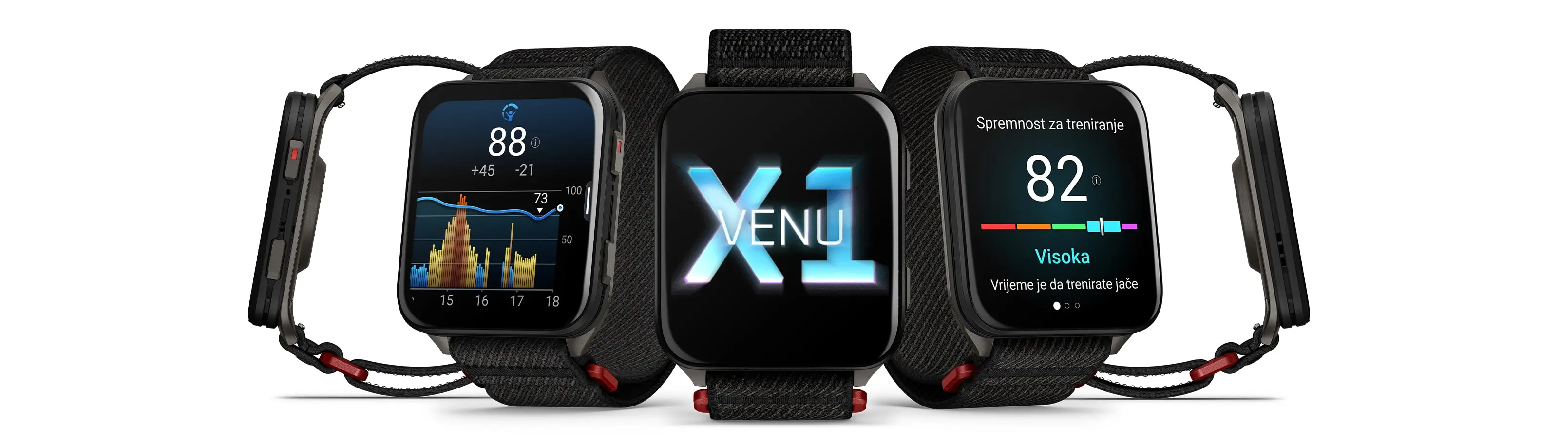 Venu X1 spaja praktične funkcije koje su vam potrebne u pametnom satu sa laganim materijalima i naprednim funkcijama za zdravlje i kondiciju. Kada je vreme za trening, oporavak ili istraživanje — verujte da će vas ovaj pametni sat odvesti tamo.